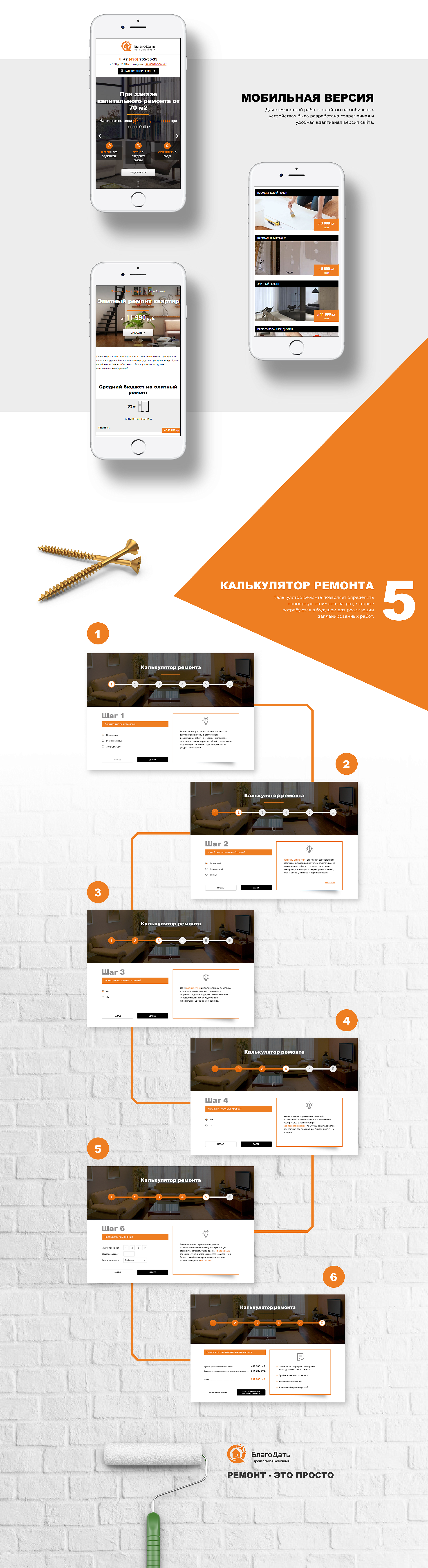 Особенность сайта: есть калькулятор ремонта, которые позволяет выполнить примерный расчет выполнения ремонта.