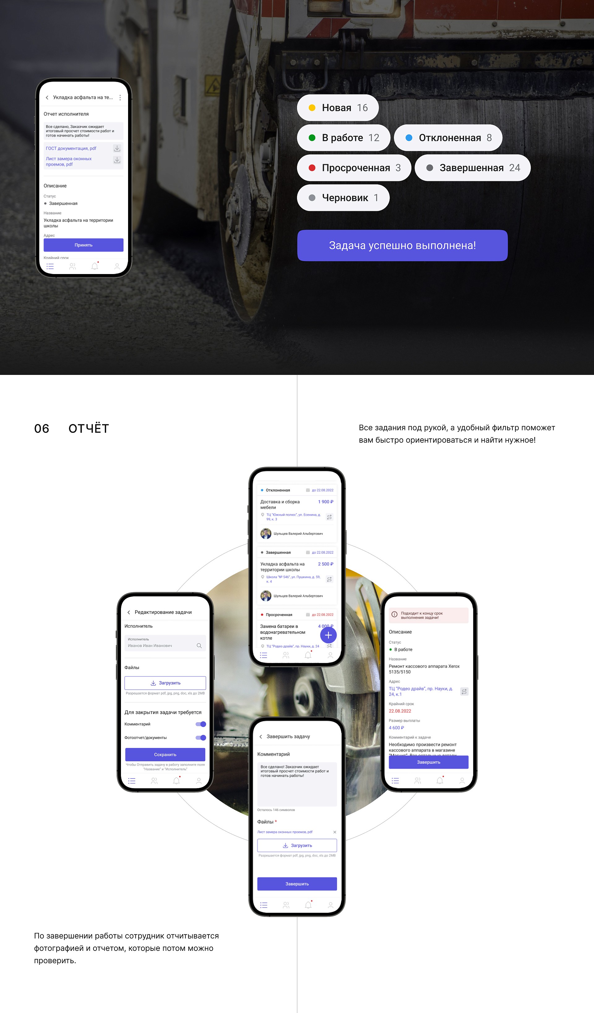 Разработали приложение-постановщик задач для сотрудников “в поле”. Приложение быстро и удобно интегрируется с любой CRM или ERP-системой. Например, клиент ставит задачу в привычной 1С, а задача появляется в приложении у сотрудника. А по завершении задачи вся информация, включая фотоотчет, сохраняется обратно в 1С.