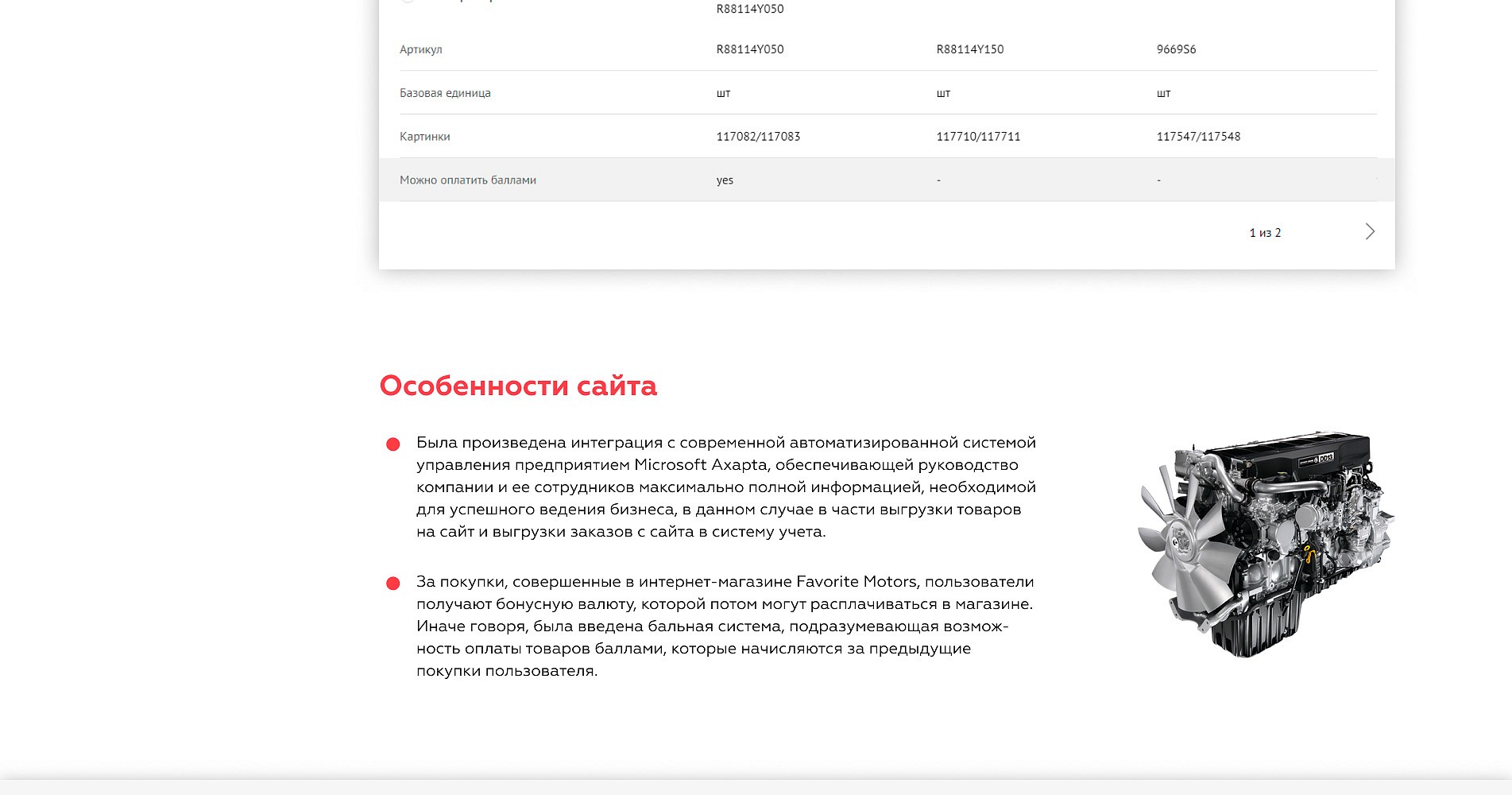 Нам была поставлена задача разработать интернет-магазин по продаже запчастей, автоаксессуаров, а также стоковых автомобилей. Общая сложность товарных позиций в районе 2 000 000 товаров и до 30 свойств в каждом товаре. В добавок весь каталог и информация по профилям посетителям и их бонусному счету должна синхронизироваться с ERP MS Axapta.