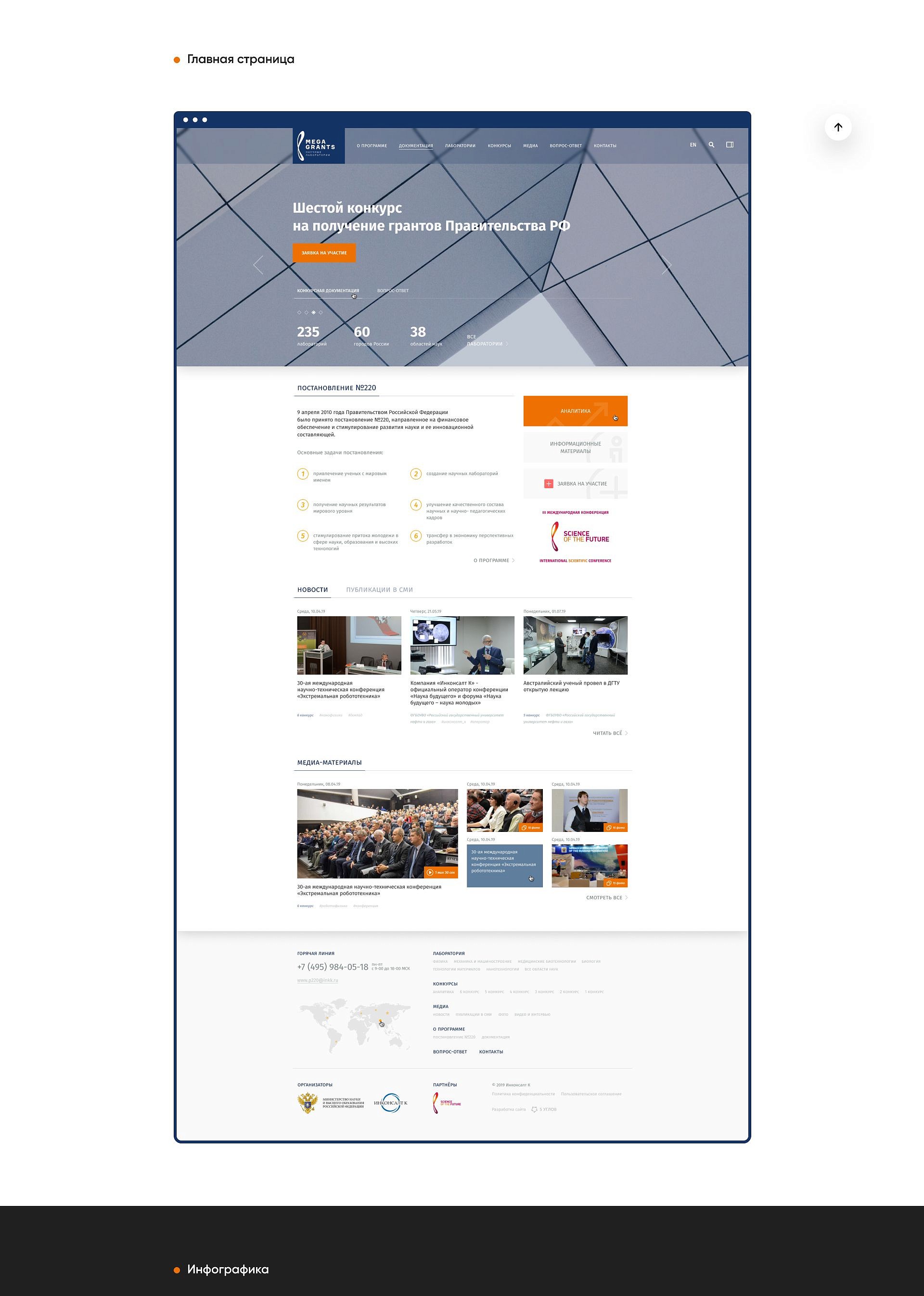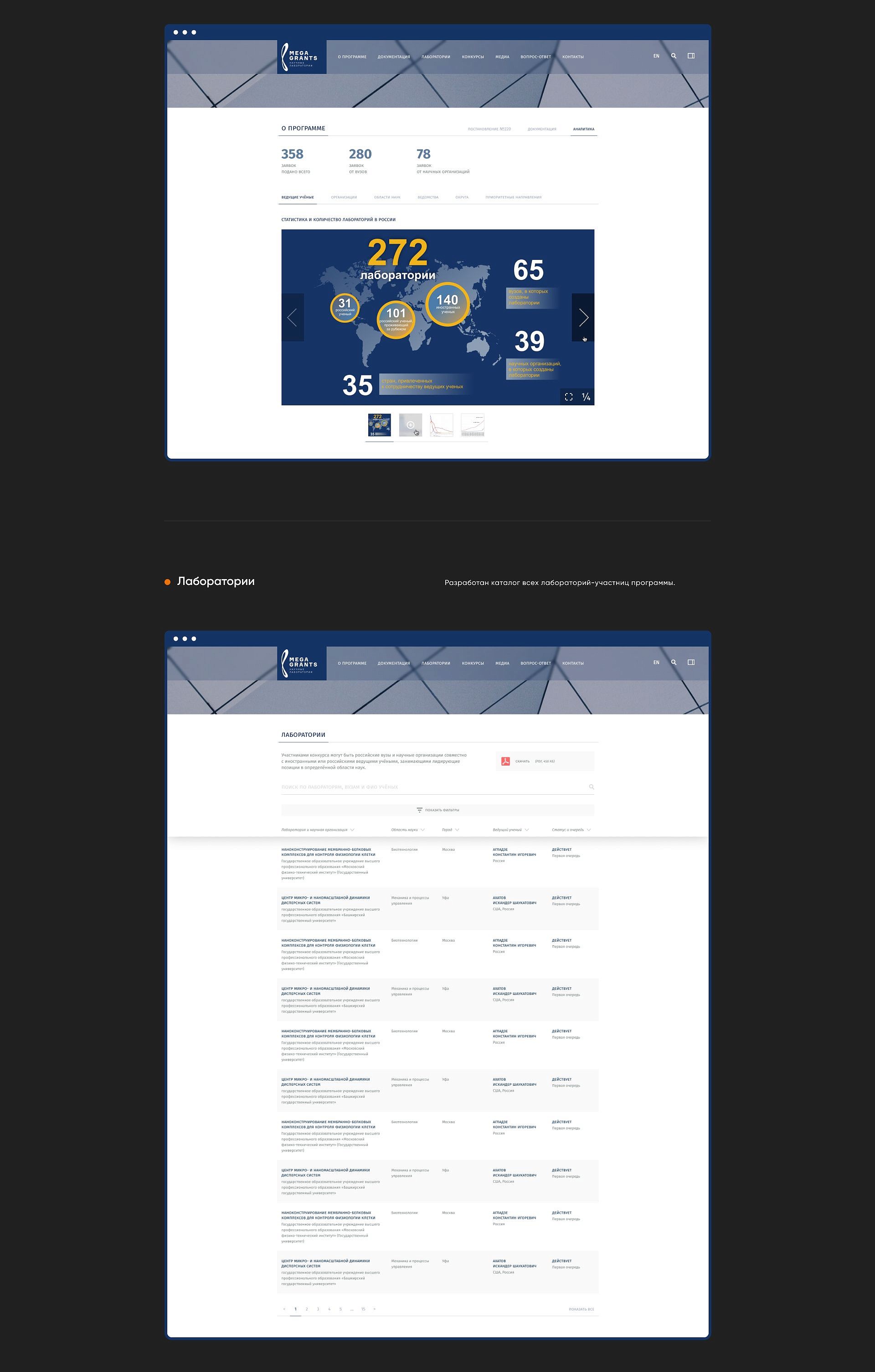 Перед нами была поставлена задача разработать сайт программы международного сотрудничества, обеспечивающий подачу новых заявок на гранты, предоставление информации о текущих грантах, а также позволяющий посмотреть список текущих лабораторий-участниц программы и каталог ученых из лабораторий-участниц.